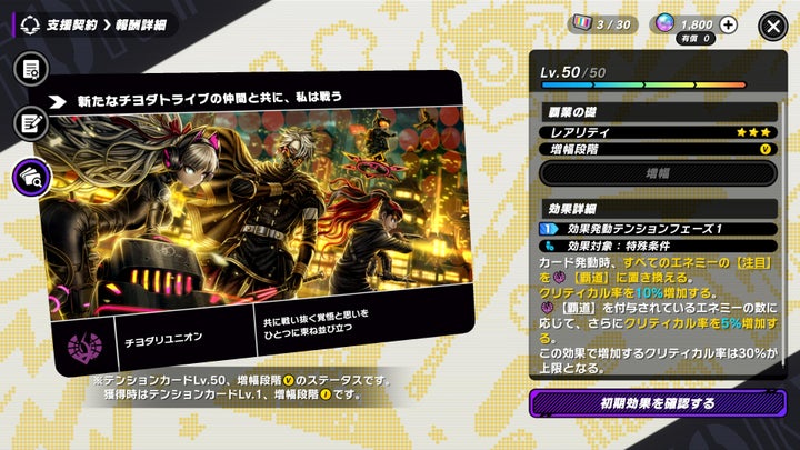 新シーズン「支援契約 レヴェニオ編」では、Qや秋葉ひなぎくらの専用コスチュームなどが報酬として用意されている。