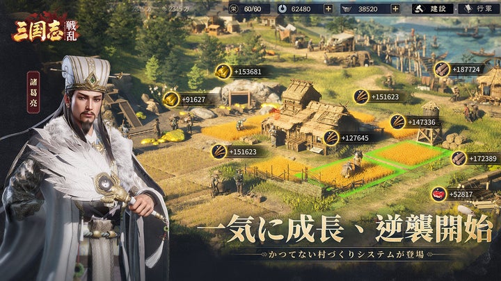 ゲームシステムは、損失ゼロの武将交換、自由に進軍できる3Dマップ、自動資源生成システム「村莊経営」、職業システムなど、従来の三国志SLGより快適で戦略的なプレイが可能です。