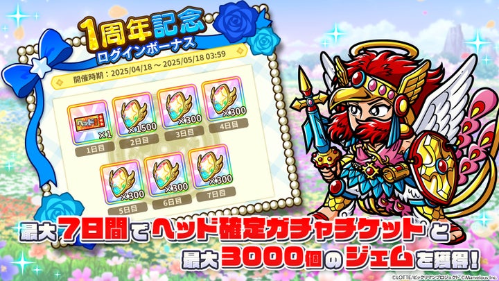 1周年を記念して無料100連ガチャキャンペーンや、ヘッド確定ガチャチケットがもらえるログインボーナスなどが実施され、さらに、ダメージチャレンジイベントや期間限定コンテンツなども登場しています。