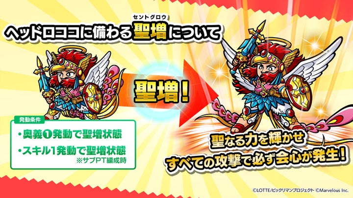 メインストーリー「聖魔大戦編第17章 起死回生の光輝」の追加や、新キャラクター「ヘッドロココ」と「ダークマター」が登場するガチャが開始されました。