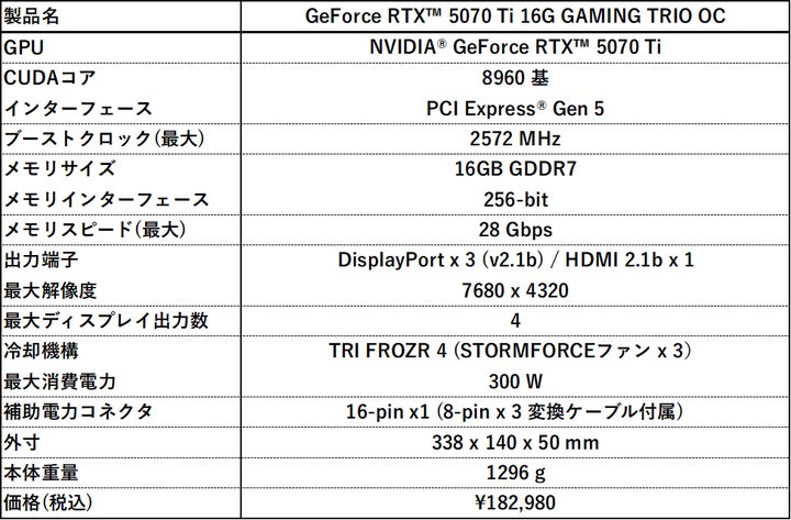- GeForce RTX™ 5070 Ti搭載グラフィックスカード「GeForce RTX™ 5070 Ti 16G GAMING TRIO OC」発売