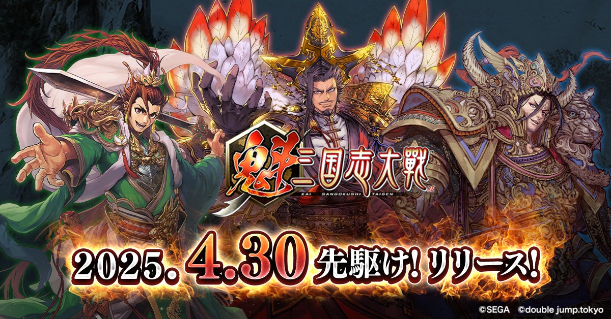 double jump.tokyoは、事前登録100万人超えの新作三国志ゲーム『魁 三国志大戦 -Battle of Three Kingdoms-』を2025年4月30日にiOS、Android、PC向けにリリースすることを発表しました。