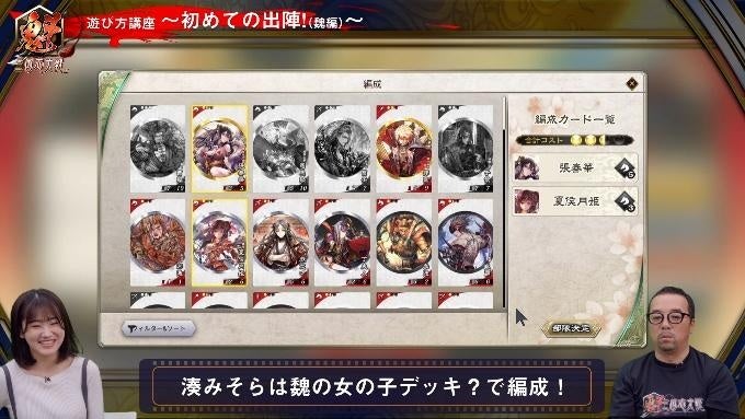 初心者向けに、西山プロデューサーと初心者代表の湊みそらさんによる「遊び方講座」動画が公開されており、部隊編成、登用&配置、出陣方法などを解説しています。