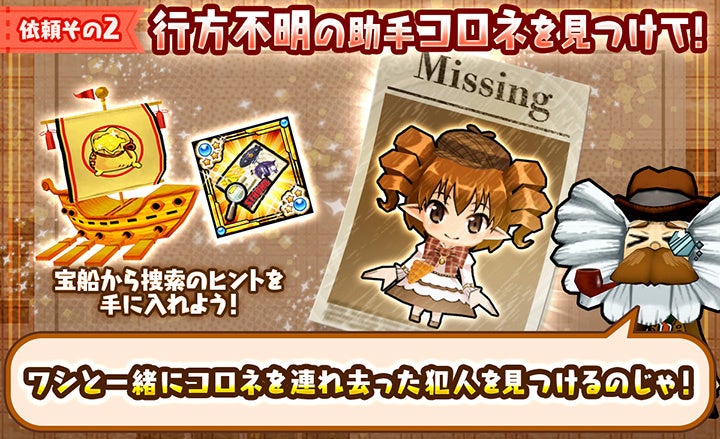 さらに、「デイ爺探偵団のお手伝いチャレンジ」や、5月6日~7日の1日限定ログインボーナス「コロネのポシェット」も用意されています。