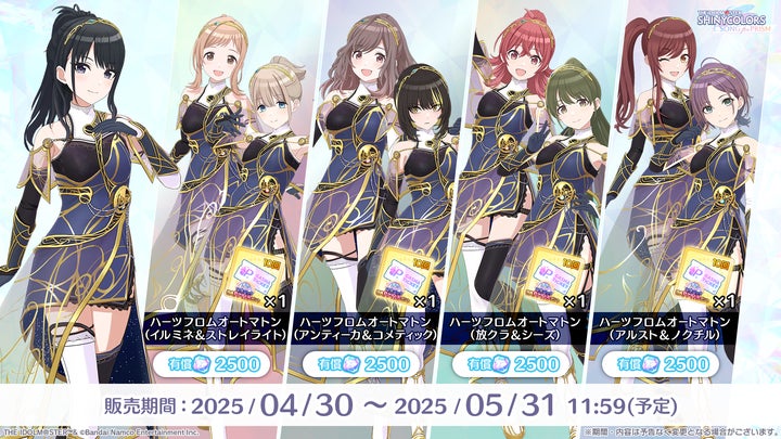 シャニソン衣装コンペ最優秀賞衣装「ハーツフロムオートマトン」も登場し、シーズンパスも販売されています。