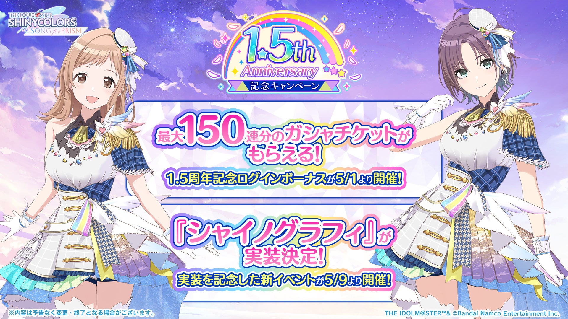 『アイドルマスター シャイニーカラーズ Song for Prism』(シャニソン)は、リリース1.5周年を記念した大型キャンペーンを開催中です。