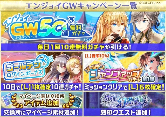 • ゴールデンウィーク期間中は最大50連無料ガチャやログインボーナス実施