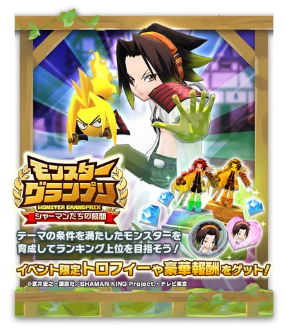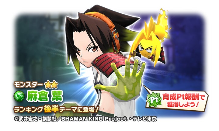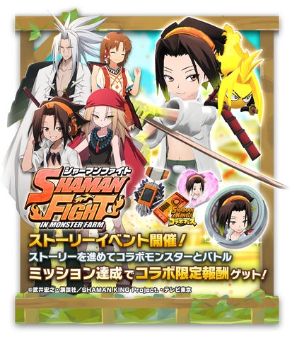 さらに、麻倉葉たちがモンスターブリーダーとして登場するストーリーイベント『SHAMAN FIGHT IN MONSTER FARM』、ログインボーナス、モンスターグランプリ『シャーマンたちの幕間』も開催されます。