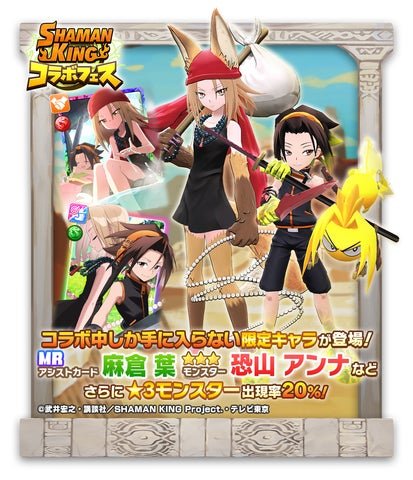 コラボでは、『SHAMAN KING』の麻倉葉と恐山アンナをモチーフにした新モンスターとアシストカードが登場するガチャイベント『SHAMAN KINGコラボフェス』を開催。