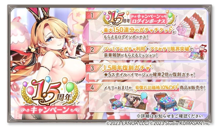 - 1.5周年記念キャンペーンで最大150連分のガチャチケット配布