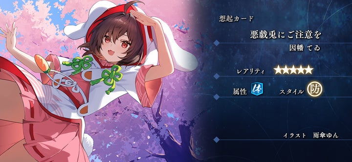 因幡てゐの★5想起カードは、ステップアップ願掛けでも入手しやすくなっている。