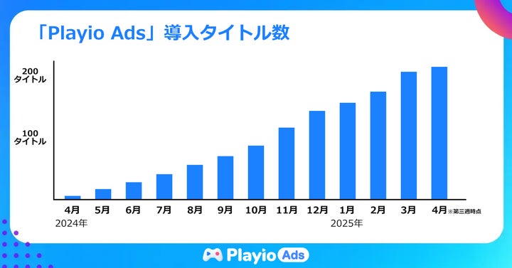 Playio Adsは、コアゲーマーをターゲットとした広告メニューで、2024年4月のテストサービス開始から約1年でこの成果を達成しました。