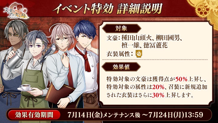 女性向けの文豪転生シミュレーションゲーム「文豪とアルケミスト」の最新イベント情報をお知らせします。