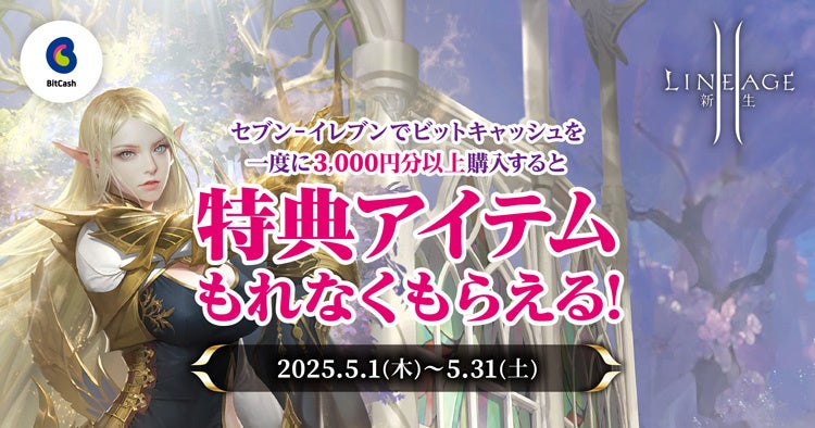 エヌ・シー・ジャパンは、PC向けオンラインゲーム『リネージュ2』のキャンペーンとして、セブン-イレブンでビットキャッシュを3,000円以上購入するとゲーム内アイテムがもらえるキャンペーンを実施します。