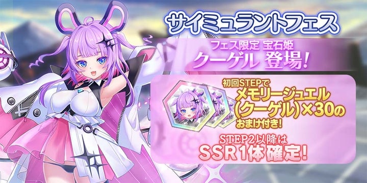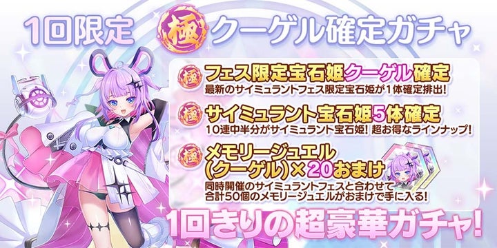 - 新宝石姫クーゲルが登場し、期間限定イベント「サイミュラントフェス」とクーゲル確定ガチャが開催