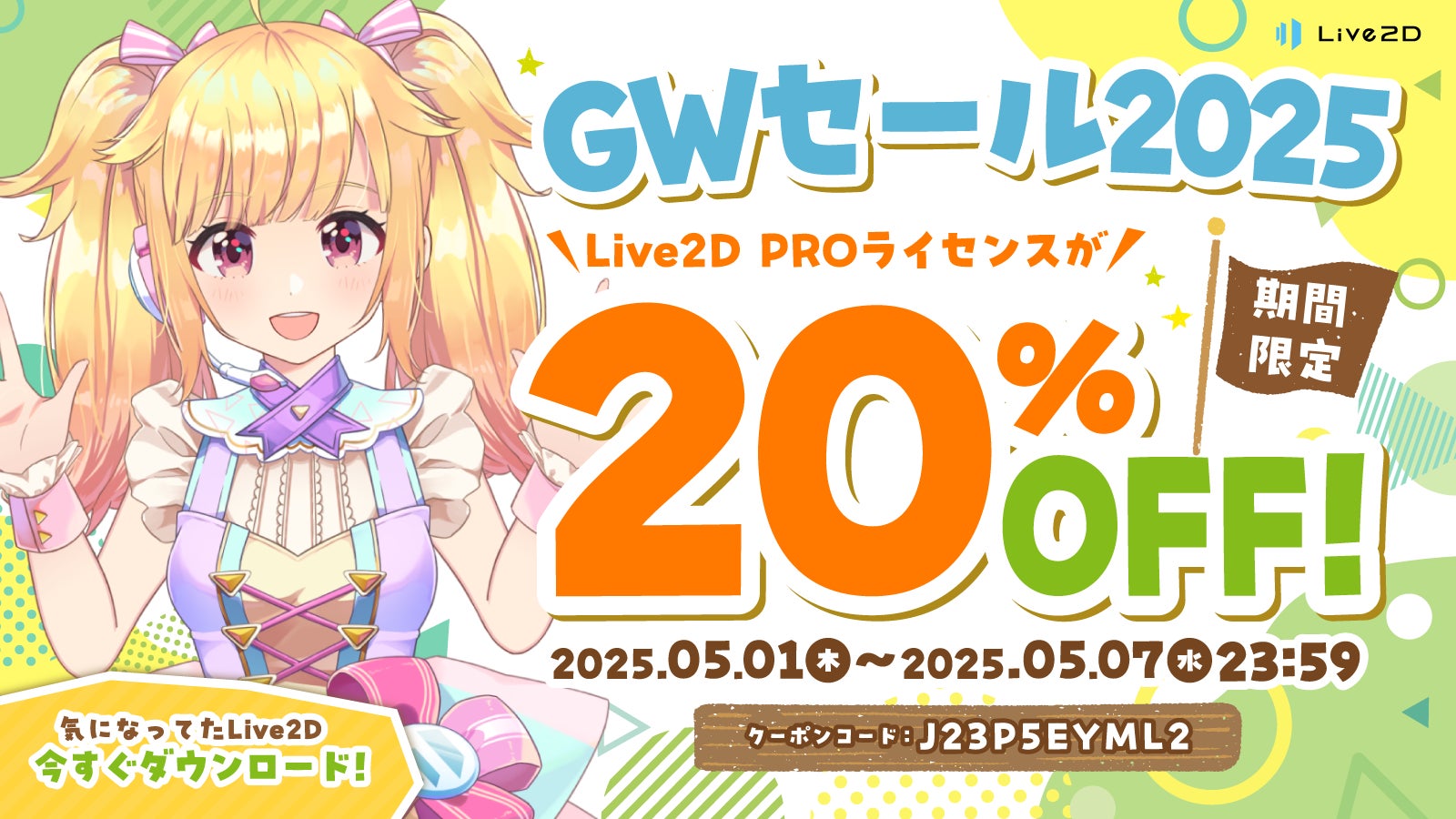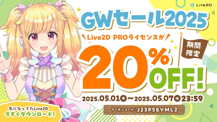 株式会社Live2Dは、2025年5月1日(木)~7日(水)の7日間、「Live2D GWセール2025」を開催します。