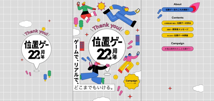 さらに、ユーザー参加型のキャンペーン「#祝22周年 わたしと位置ゲー」も開催され、思い出のエピソードを募集しています。
