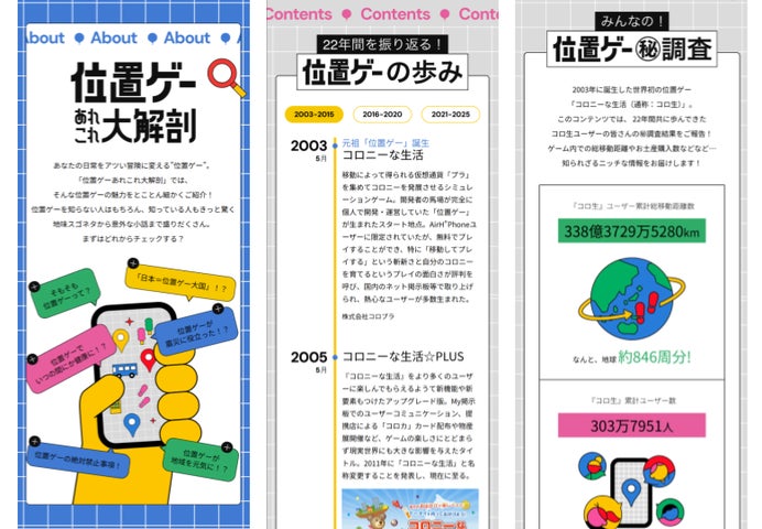 サイト内では位置ゲーの歴史や『コロニーな生活』の20周年を振り返るコンテンツが公開されています。