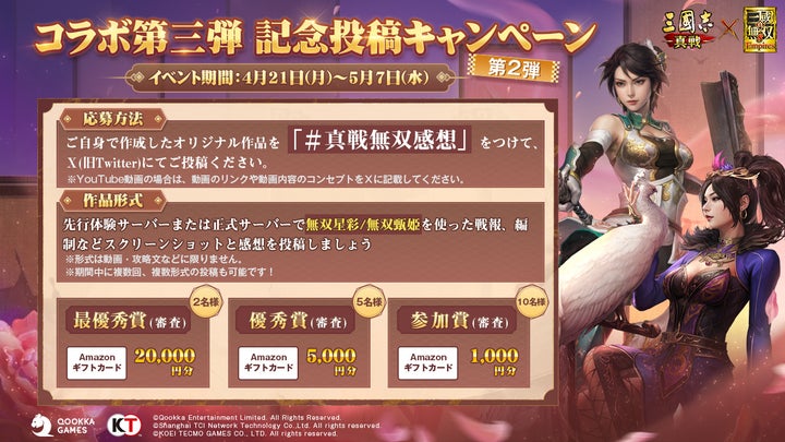 イベントでは、えなこさんver.の無双甄姫と会話できるSNSイベントや、リポストキャンペーンなどが実施され、AmazonギフトカードやNintendo Switchなどの賞品が当たる。