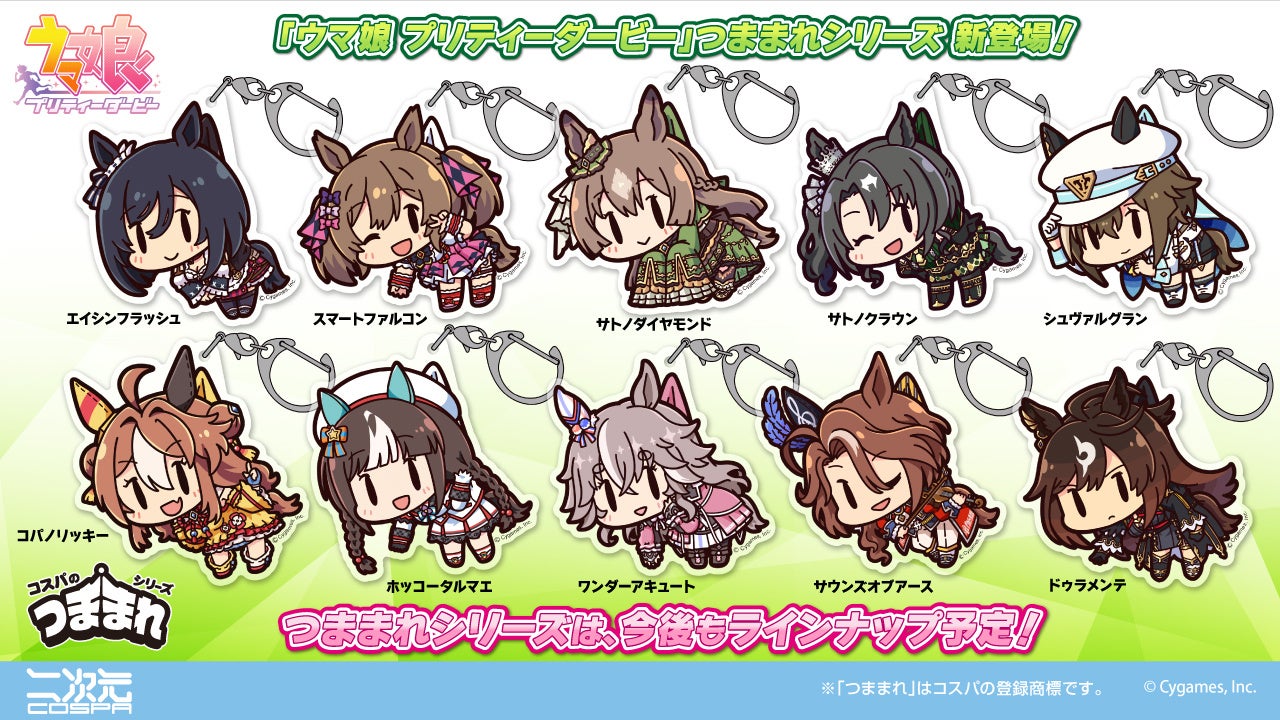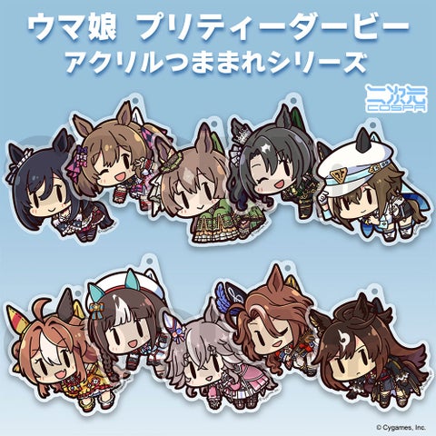 株式会社コスパは、『ウマ娘 プリティーダービー』より、サトノダイヤモンドを含む10人のウマ娘のアクリル製アクセサリー「アクリルつままれ」を発売します。