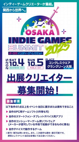 - 『OSAKA INDIE GAMES SUMMIT』の出展クリエイター募集開始