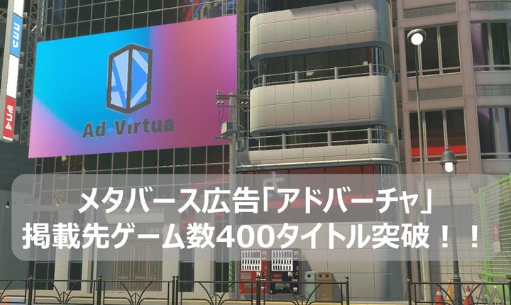 メタバース広告プラットフォーム「アドバーチャ」が、広告モニター設置ゲーム数が400タイトルを突破したと発表しました。