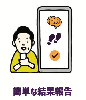 運動メインと脳トレメインの2つのコースから選択でき、アプリで歩数や脳トレ実施画面のスクリーンショットを共有する簡単な報告方法となっています。