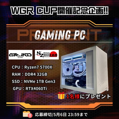 大会の開催を記念して、WGR公式Xアカウントをフォロー&該当ポストをリポストした視聴者から抽選で1名に高性能ゲーミングPCがプレゼントされるキャンペーンも実施されました(応募受付は終了)。