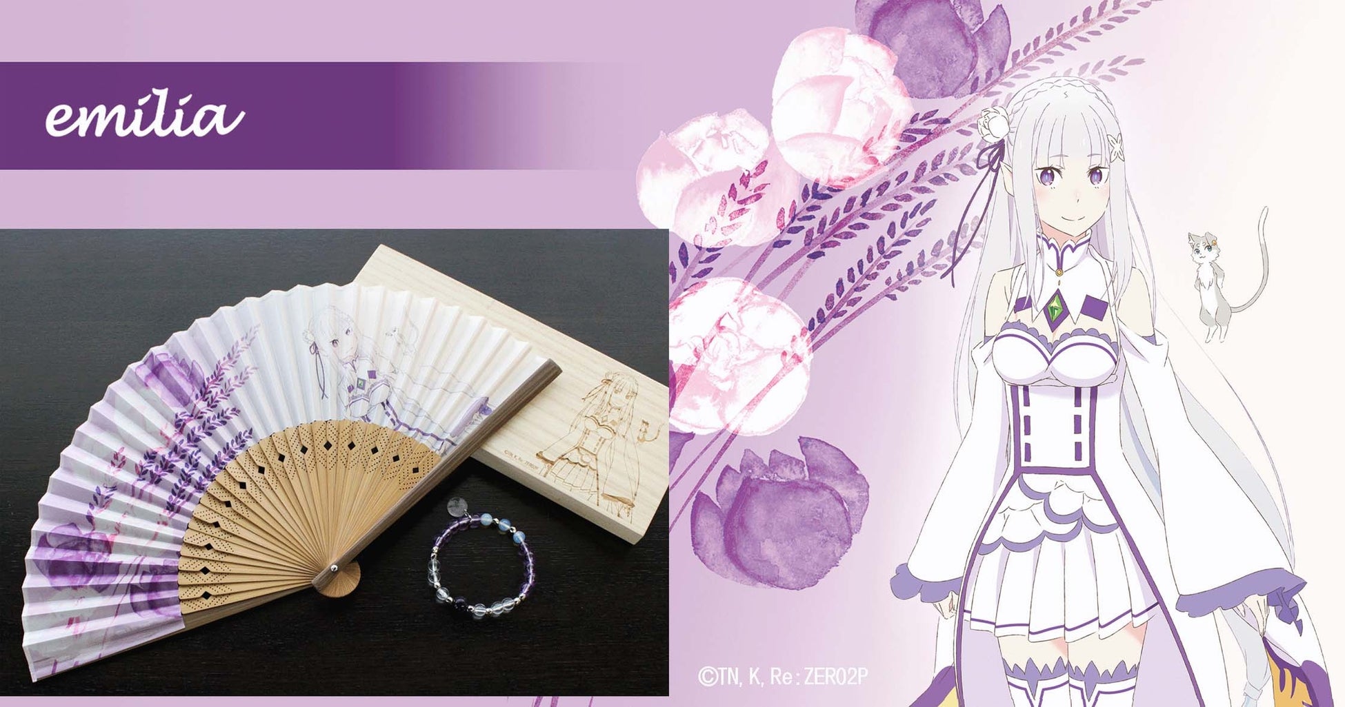 このコラボでは、「Re:ゼロから始める異世界生活」という作品のキャラクターをイメージした扇子とブレスレットが登場しています。
