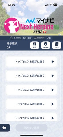 - 「なんドラ」アプリでマイナビカップのトップ5選手と優勝者を予想できる企画を実施