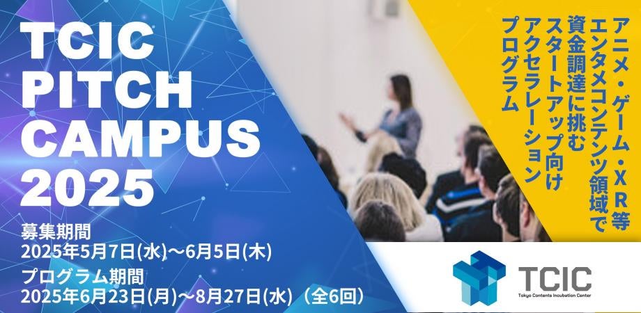 東京都が運営する東京コンテンツインキュベーションセンター(TCIC)は、アニメ・ゲーム・XR等のエンタメコンテンツ領域のスタートアップ向けアクセラレーションプログラム「TCIC Pitch Campus 2025」の参加者を募集しています。