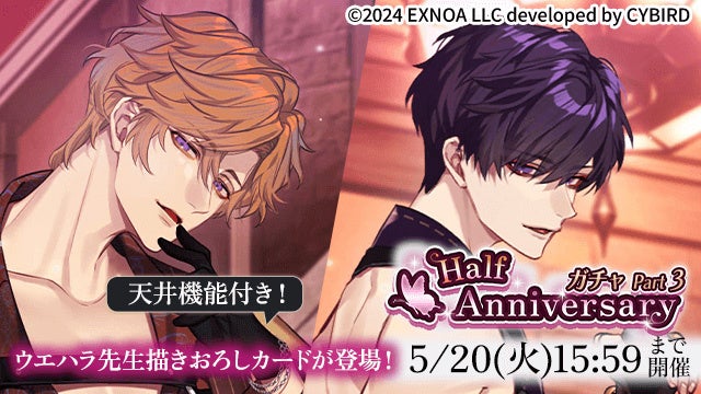 同時に「Half Anniversaryガチャ Part2、Part3」も開催中で、ウエハラ蜂先生描きおろしのカードなどを入手できます。