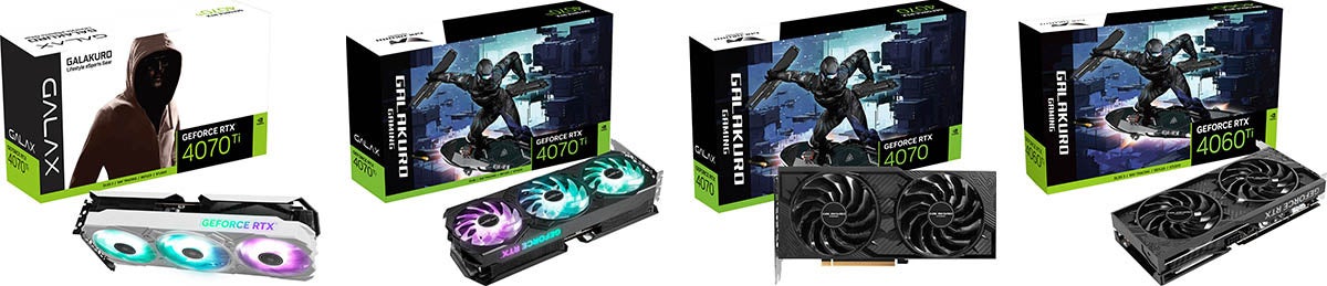 「玄人志向」と「GALAKURO GAMING」から、GeForce RTX 4070 Ti、RTX 4070、RTX 4060 Ti搭載のグラフィックボードが発売されます。