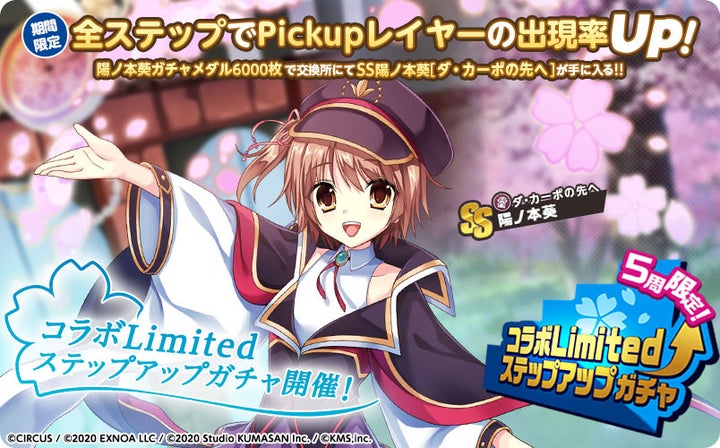 コラボガチャは第1弾、第2弾、陽ノ本葵ステップアップガチャの3種類で、SSレアリティのキャラクター「リッカ・グリーンウッド」「シャルル・マロース」「葛木姫乃」「サラ・クリサリス」「陽ノ本葵」などが登場します。