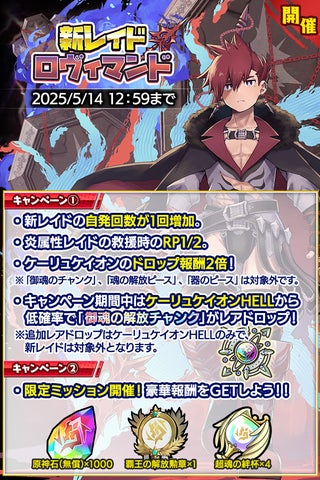 - 炎属性の新レイドボス「ロヴィマンド」が登場するレイドキャンペーン開催