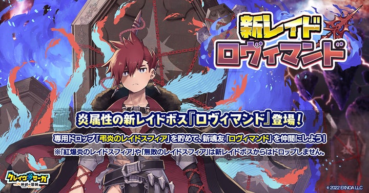 DMM GAMESで配信中のRPG『クレイヴ・サーガ 神絆の導師』にて、5月7日~14日の期間、炎属性の新レイドボス「ロヴィマンド」が登場するレイドキャンペーンが開催されています。