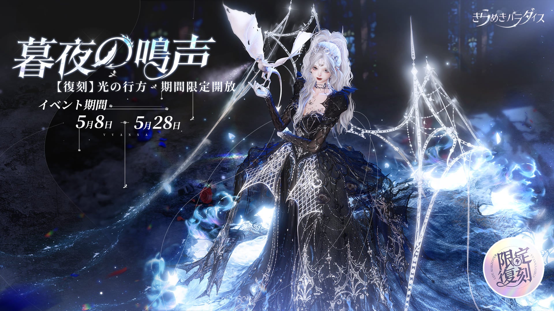 VVANNA STUDIOは、スマホゲーム『きらめきパラダイス』で5月8日よりイベント『暮夜の鳴声』を復刻すると発表しました。