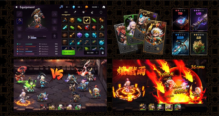 プレイヤーは三国志の武将キャラクターでパーティーを編成し、PvEやPvPバトルを楽しみます。