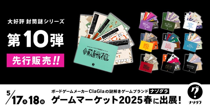 謎解きゲームブランド「ナゾグラ」(ClaGla)が、ゲームマーケット2025春(5月17日・18日、幕張メッセ)に出展します。
