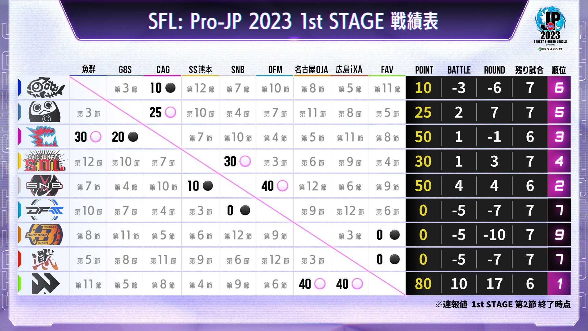 「ストリートファイターリーグ: Pro-JP 2023」1stステージ 第2節の試合速報です。