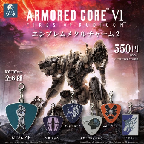 玩具メーカーのスタジオソータは、『アーマード・コアVI ファイアーズオブルビコン』のエンブレムメタルチャーム第2弾を発売します。