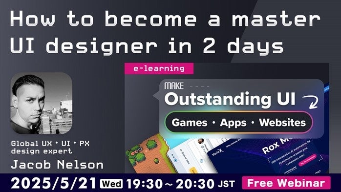 株式会社クリーク・アンド・リバー社は、5月21日(水)19:30~20:30に、世界的なUXデザイナーJacob Nelson氏による無料オンラインセミナー「卓越したUIを作るゲーム、アプリ、ウェブサイト」を開催します。