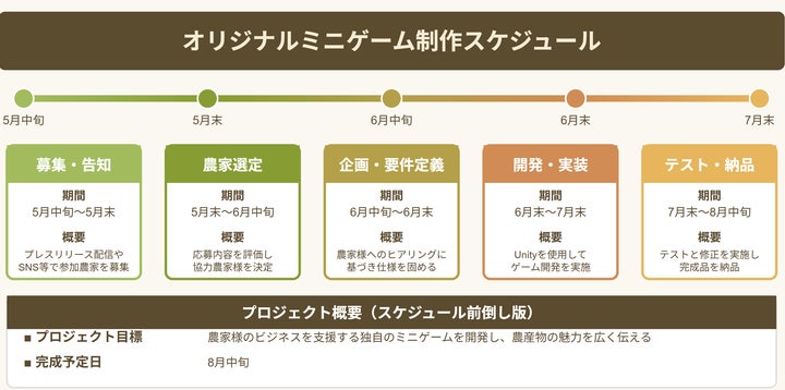 このプログラムでは、同研究所のインターン生がUnityを用いて、参加農家1園の農園をPRするオリジナルミニゲームを無料で制作します。