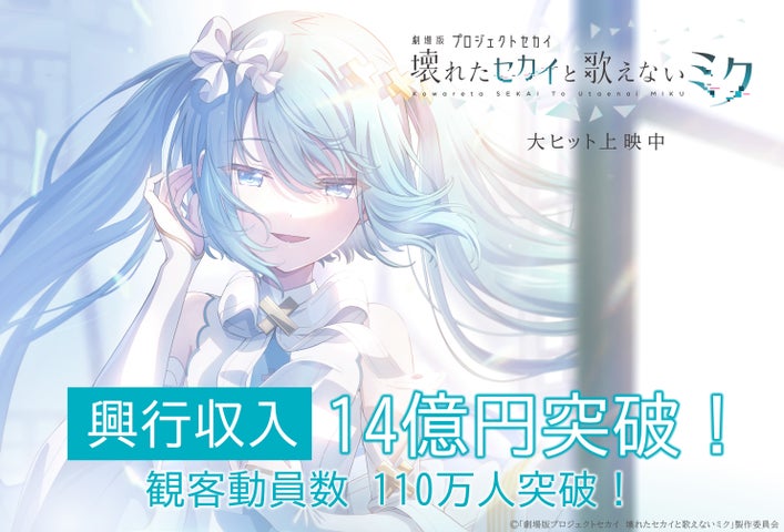 - 『劇場版プロジェクトセカイ 壊れたセカイと歌えないミク』興行収入14億円、観客動員数110万人突破