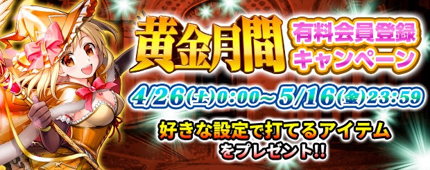 現在、4月26日から5月16日までは有料会員登録キャンペーンを実施中で、登録者にはゲーム内アイテムがプレゼントされます。