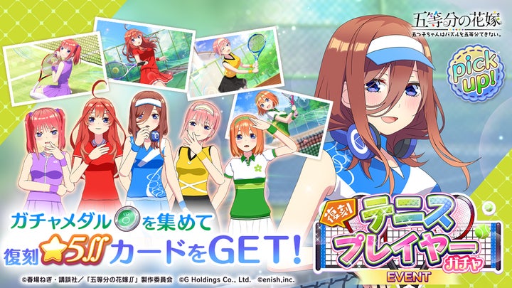 - 『五等分の花嫁 五つ子ちゃんはパズルを五等分できない。』にて復刻イベント「五つ子ちゃんはテニスプレイヤー~ペアの相手は誰にする!?~」開催