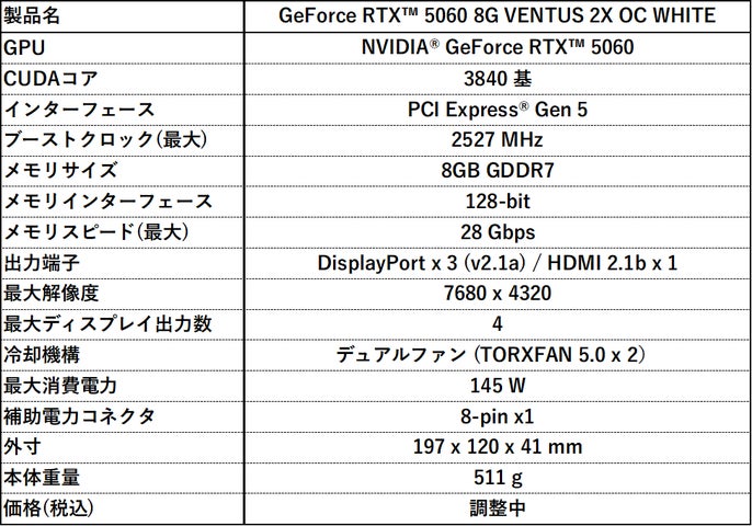 - GeForce RTX™ 5060 8G GAMING TRIO OC、GeForce RTX™ 5060 8G GAMING OC、GeForce RTX™ 5060 8G VENTUS 2X OC、GeForce RTX™ 5060 8G VENTUS 2X OC WHITE