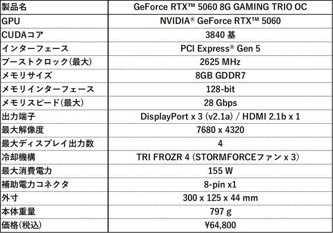 - NVIDIA GeForce RTX™ 5060搭載グラフィックスカード4機種を発売