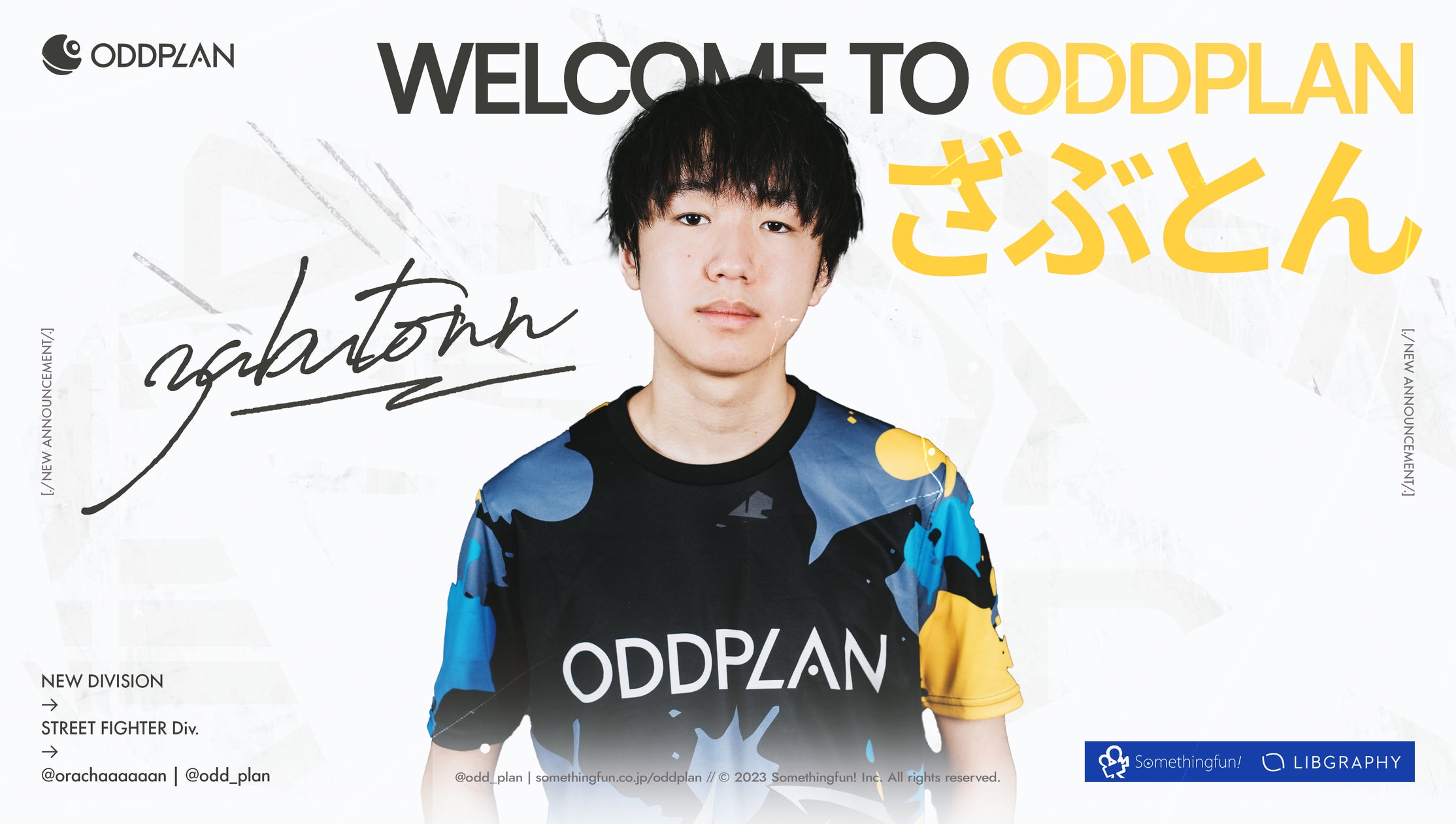 プロeスポーツチーム「ODDPLAN」に、ストリートファイター6プレイヤーのざぶとん選手が加入しました。