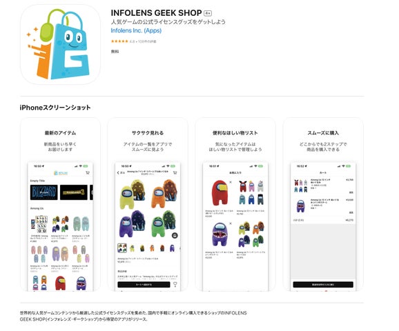 INFOLENS GEEK SHOPは、世界的に人気のあるゲームや映像コンテンツの公式ライセンスグッズを約300種類取り扱うショップで、池袋パルコ店も展開しています。